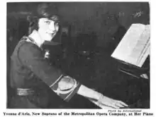 - ↑ "Yvonne D'Arle Leaves Metropolitan". St. Louis Post-Dispatch. October 3, 1926. p. 67. Archived from the original on 30 March 2018. Retrieved 30 March 2018. via Newspapers.com