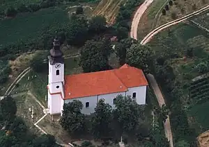 Until the end of World War II, the inhabitants were Roman Catholic Danube Swabians, also called locally as Stifulder, because the majority of their ancestors arrived during the 17th and 18th centuries from Fulda (district).[1] Most of the former German settlers were expelled to allied-occupied Germany and allied-occupied Austria in 1945–1948, following the Potsdam Agreement.[2] Only a few Germans of Hungary live there, the majority today are the descendants of Hungarians from the Czechoslovak–Hungarian population exchange. They occupied the houses of the former Danube Swabian inhabitants. The Stifolder or Stiffoller are a Roman Catholic Subgroup of the Danube Swabians. Their ancestors once came ca. 1717 - 1804 from the Hochstift Fulda and surroundings, (Roman Catholic Diocese of Fulda), and settled in the Baranya and in Tolna.[3] They retained their own German Stiffolerisch Schvovish dialect and culture, until the end of WW2. Also a salami is named after these people.[4]