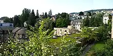 In 1962, the faculty of science of the University of Zürich proposed to establish the Irchelpark campus on the Strickhofareal. The first stage the construction of the university buildings was begun in 1973, and the campus was inaugurated in 1979.[1][2] The construction of the second stage lasted from 1978 to 1983.[2] The campus also houses the anthropological museum Anthropologisches Museum,[3] and the cantonal Staatsarchiv Zürich.[4] Built in 1901 as Rigiblick restaurant, the former Gastsaal was re-opened as Theater Rigiblick in 1984.[5]