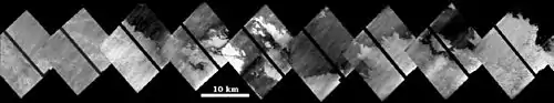 Io is one of the most challenging Jovian moons for which to establish topography. A couple techniques aided in the making of Io's topography, such as "3D" stereo photogrammetry (SP) and "2D" photoclinometry (PC).[4] Ionian volcanoes have been poorly characterized because of their volcanic construct, which is different from well-studied planetary volcanoes such as those on Mars. Two common flow field morphologies have been identified on Io:[4]