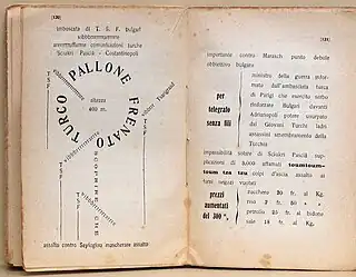 Zang Tumb Tumb (usually referred to as Zang Tumb Tuuum) is a sound poem and concrete poem written by Filippo Tommaso Marinetti, an Italian futurist. It appeared in excerpts in journals between 1912 and 1914, when it was published as an artist's book in Milan. It is an account of the Battle of Adrianople, which he witnessed as a reporter for L'Intransigeant. The poem uses Parole in libertà (words in freedom; creative typography) and other poetic impressions of the events of the battle, including the sounds of gunfire and explosions. The work is now seen as a seminal work of modernist art, and an enormous influence on the emerging culture of European avant-garde print.[1]
