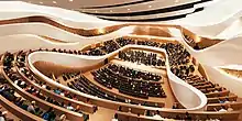 The area of the park's facilities is almost 78,000 square meters, of which 25,200 square meters is occupied by a multipurpose concert hall. The park also has underground parking for 430 cars. The first new park in Moscow for over 50 years, its construction cost more than $480 million.[4] Plans for a new park were first raised in 2012 when the city of Moscow and its chief architect Sergey Kuznetsov organized a design competition to transform the historically privatized, commercial Zaryadye area into a public park. An international design consortium led by Diller Scofidio + Renfro (DS+R) with Hargreaves Associates, Citymakers and BuroHappold Engineering was selected out of 90 submissions from 27 different countries. The selected competition design sought to create a park borne of Russian and Muscovite heritage.