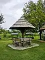 In 2017–2020, a dozen sculptures of the animals which inhabit the reserve were carved and exhibited in the open, including beaver, umbra fish and donkey. They were made by the artistic team of archaeologist Zoran Đajić. In September 2020, a massive, 15-ton heavy sculpture of a "Serbian ox" was placed at the main entry. Celebrating importance of oxen in older Serbian history, the sculpture was carved from one slab of hard, ancient Brazilian stone, formed over 1 billion years ago. The sculptor is Velimir Karavelić.[6]