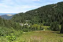 Das Zastler Loch is the source region of the Zastlerbach stream. In winter the slopes of the cirque are prone to the formation of cornices and to avalanches. Sometimes the snow remains until well into the summer months. Around 1840, when a cold period dominated Europe, the inhabitants of the eastern and northern Feldberg region cut the snowfield to the ground because they feared a glaciation of the Feldberg.[3] Since 1651 there has been grazing in the Zastler Loch.[4] The former cattle hut, the Zastler Hut is a restaurant today. Next to it is the Freiburger Hut which was built in 1952 for the Freiburg Ski Club.[5] Charcoal burning sites may also be seen in the Zastler Loch.[6]