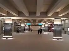 The original station built in 1904 was an open-air station with two side platforms located behind the station building. The ticket offices and waiting rooms were on the ground floor, as was the access to the platforms. The rest of the building included offices for the railway administration as well as apartments for its workers.[6] After the first renovation made in the 1990s, the building included a main hall with separate access to the Euskotren platforms, which were located on their original situation elevated behind the station, and the Metro Bilbao platforms, which were underground and followed the same cavern-like architecture as those in the rest of the network, designed by Norman Foster.