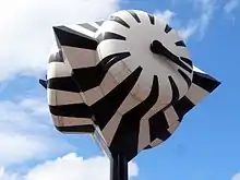 The Monumental Clock [Dutch: Monumentale klok], commonly known as the Zebra clock [Dutch: Zebraklok], is a street clock and work of public art on the Bezuidenhoutseweg street side of the Koningin Julianaplein square, next to Den Haag central railway station in The Hague, Netherlands. It is a local landmark and popular as a meeting-place for people arriving or departing the city by train.[1]