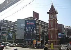 Zegyo Market, covering 12 acres (4.86 hectares), was founded during the reign of King Mindon. It was a principal distribution centre for beans, citrus fruit, cotton, nuts, onions, rice, tobacco and wheat as well as the main market for jewellery and handicrafts such as silver and gold embroidery.[1] The market was destroyed by fire in 1897,[2] and rebuilt in 1903 with a masonry structure designed by an Italian, Count Conte Calderari.[3] In the 1990s, the colonial era structure was pulled down and replaced with a Chinese-style shopping centre.[3]