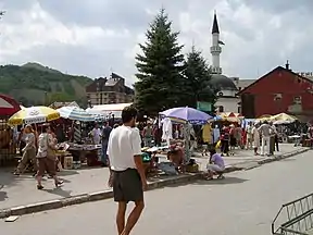 On 19 April 1993, during the Croat–Bosniak War, sixteen civilians were killed and fifty injured when a HVO howitzer-fired grenade hit the central bazaar of Zenica.[27] The grenade was shot from the village of Putićevo [15 km (9.3 mi)].[28] During this period, Zenica was isolated from the rest of the world for a year and a half. The city suffered significant losses from sniper fire, arson, hunger, and a lack of electricity.[29]
