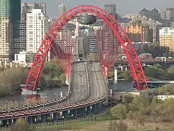 Zhivopisny Bridge (Russian: Живописный Мост, lit. Picturesque bridge) is a cable-stayed bridge that spans Moskva River in north-western Moscow, Russia. It is the first cable-stayed bridge in Moscow. It opened on 27 December 2007 as a part of Krasnopresnensky avenue. It is also the highest cable-stayed bridge in Europe.[1] The author of the project is the architect Nikolay Shumakov.[2]