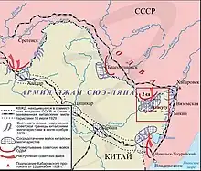 On November 17, the Soviets decided to take ten divisions and split their attack into two stages. The first stage was to go past Manzhouli and to attack the region of Chalainor. After capturing the region, Soviet troops set their sights on Manzhouli.[19]