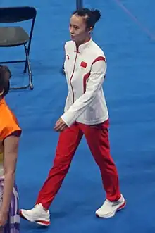 Zhu Xueying (born 2 March 1998)[1] is a Chinese trampoline gymnast and Olympic champion. At the 2017 Trampoline Gymnastics World Championships, she won gold medals in the synchro and team events. At the 2018 Trampoline Gymnastics World Championships, she won silver in the individual event and gold in the team event. In July 2021, she won the gold medal in the women's trampoline event at the 2020 Summer Olympics in Tokyo, Japan.[2]