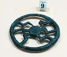 Zierscheibe (German for "ornamental disk") in archaeology is the term for a kind of metal jewellery dating to the European Iron Age. They are found in graves and are thought to have been worn as pendants attached to the tunica, or as part of a belt pouch.