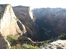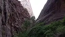 Zion Canyon (also called Little Zion, Mukuntuweap, Mu-Loon'-Tu-Weap, and Straight Cañon; weap is Paiute for canyon) is a deep and narrow gorge in southwestern Utah, United States, carved by the North Fork of the Virgin River. Nearly the entire canyon is located within the western half of Zion National Park.[1]