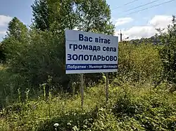 Zolotarovo (Ukrainian: Золотарьово, Hungarian: Ötvösfalva, German: Solotarjowo), Czech: Zlatary is a village located in the Khust Raion of Zakarpattia Oblast (province) of western Ukraine.