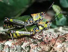 Zonocerus variegatus, the painted grasshopper or variegated grasshopper,[1] is a species of insect belonging to the family Pyrgomorphidae. It is native to tropical Africa,[2] and is considered a crop pest in much of Western and Central Africa.