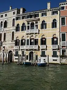 The Zulian lived in Santa Fosca up to the 18th century.[2] In the 17th century they erected the Palazzo Zulian on the Canal Grande. They probably built the palace over a pre-existing building owned by them, as the family is registered in the estimo of the Contrada of Santa Fosca since 1379.[2][6] Girolamo Zulian left the palace to the Priuli of Sts. Gervasius and Protasius, bequeathing it to them in the will he drew up on August 2, 1794.[6]
