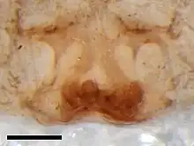 Epigyne of Zygoballus maculatipes holotype (scale = 1 mm)