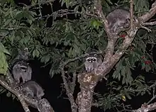 A mother raccoon and her four kits eating cherries in a suburban backyard in Burnaby, BC.