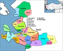 From Ottoman Turkish ازمیر (İzmir), from Byzantine Greek Σμύρνη (Smúrnē).