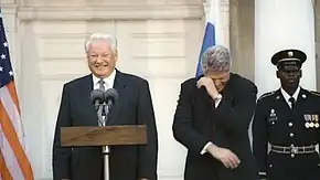 Yeltsin and Bill Clinton share a laugh in October 1995.