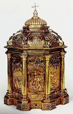 реліква́рій • (relikvárij) m inan (genitive реліква́рію, nominative plural реліква́рії, genitive plural реліква́ріїв)