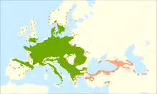 Distribution map of Fagus sylvatica (European Beech) and Fagus orientalis (Oriental Beech)