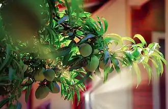 Via Middle Persian [script needed] (ʾmbk' /ambag/, “*mango; a preserve, conserve”). The alternative form عَنْبَة (ʕanba) / عَْنْبَا (ʕanbā) is from Neo-Persian انبه (anba) as well as directly via Apabhraṃśa from Sanskrit आम्र (āmra, “mango”). Later again borrowed from modern Indo-Aryan languages into the dialects, as from Marathi the Iraqi Arabic عَمْبَة (ʕamba, “mango pickle mash”).