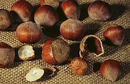 - → Persian: بندق (bondoq), فندق (fondoq, fandoq, “hazelnut”) (see there for further descendants), بندوق (bonduq, “rifle”)