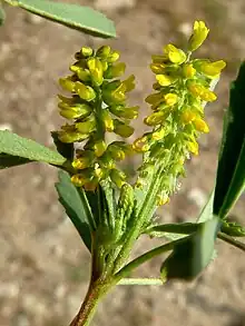 - blue melilot (Melilotus caerulea) or furrowed melilot (Melilotus sulcata) or elegant sweetclover (Melilotus elegans)