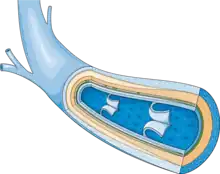 - vein, a blood vessel that transports blood from the capillaries back to the heart
