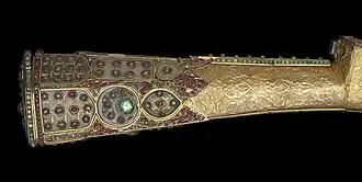 - → Persian: قنداق (qondâq), غنداق (ğondâq), قنداغ (qondâğ), قنداقه (qondâqe)