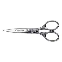 - scissors, a tool used for cutting consisting of two crossing blades