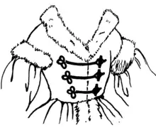 - (by extension) kind of waistcoat or jacket adorned with frogs or similar fasteners