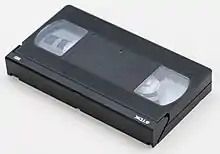 - videotape (wide magnetic tape used for recording visual images for subsequent playback or broadcasting)
