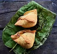 Borrowed from Classical Persian سنبوسه (sanbōsa), from Middle Persian.