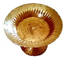 Inherited from Sanskrit ৱৰ্ত (varta, “circular object; something made of metal”). Cognate with Bengali বাটা (baṭa, “box for betel”), Odia ବଟା (bôṭa, “metal pot for betel”).