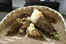 From বাঁহ (bãh, “bamboo”) + গাঁজ (gãz, “sprout”).