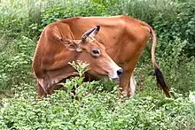 - cow; An adult female of the species Bos taurus, commercially kept for their milk.