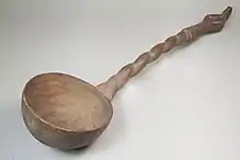 From Old Khmer វេក៑ (vek), អហ្វេក៑ (ʼahvek, ladle; scoop). Compare Angkorian Old Khmer អ្វេក៑ (ʼvek); Modern Khmer វែក (vɛɛk).