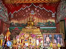 Mural painting depicts the mythological cosmos, with Mount Meru as the centre.