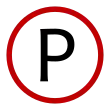 - Technically, this should be typeset as a black 'P' in a red circle.