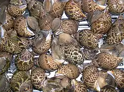 バイ (bai): Babylonia japonica or Japanese ivory shell for sale at a fishmarket in Japan.