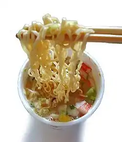 - cup noodles, a kind of instant noodles sold as a single serving prepackaged in a disposable cup