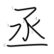 丞 (Kangxi radical 1, 一+5, 6 strokes, cangjie input 弓水一 (NEM) or 難弓水一 (XNEM), four-corner 17103, composition ⿱氶一)