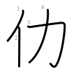 仂 (Kangxi radical 9, 人+2, 4 strokes, cangjie input 人大尸 (OKS), four-corner 24227, composition ⿰亻力)