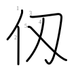 仭 (Kangxi radical 9, 人+3, 5 strokes, cangjie input 人尸大 (OSK) or 難難人尸大 (XXOSK), composition ⿰亻刄)