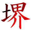 | For pronunciation and definitions of 堺 – see 界 (“boundary; domain; realm; zone; area; etc.”). (This character is a variant form of 界). |