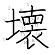 壊 (Kangxi radical 32, 土+13, 16 strokes, cangjie input 土十田女 (GJWV), composition ⿰土⿳十罒衣)