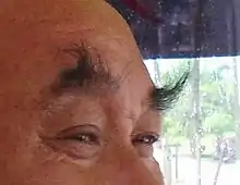 - specially long eyebrows (often of a middle-aged man, considered a sign of longevity) (Classifier: 道 m)