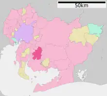Map of Aichi Prefecture, with the city of Anjō highlighted in pink